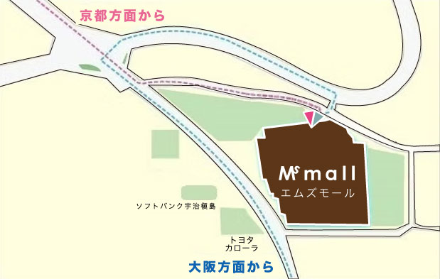 ◾︎京都・大阪方面からお越しの方→京滋バイパス宇治西インター出て左折、24号線北へ約5分。